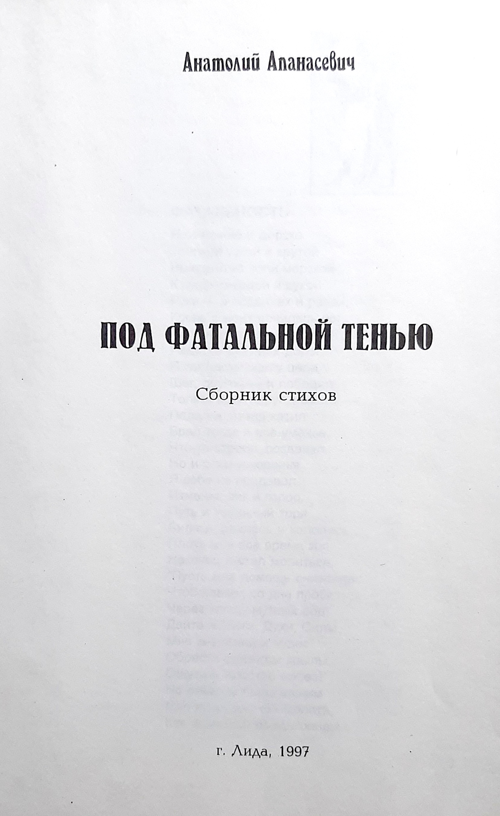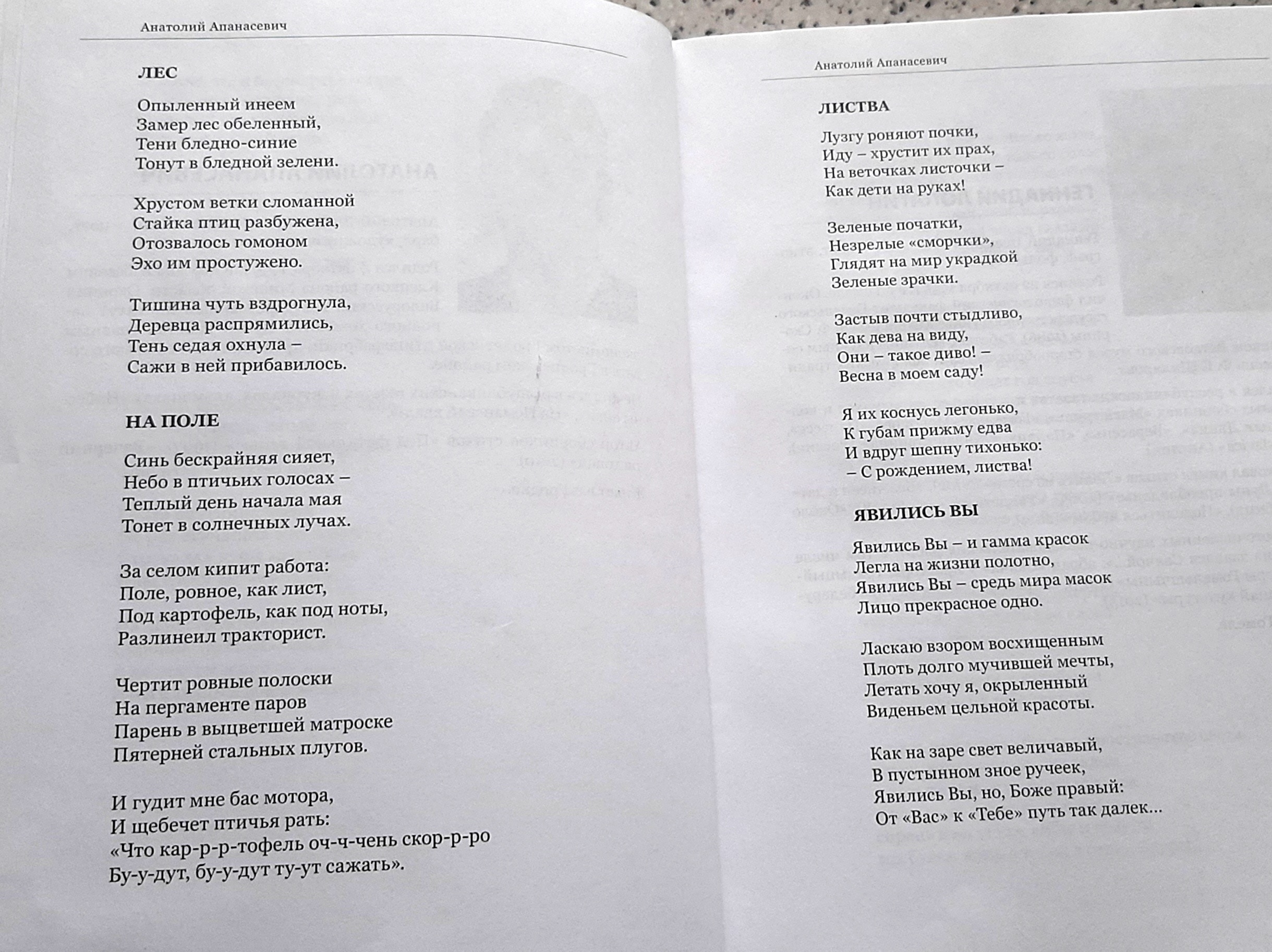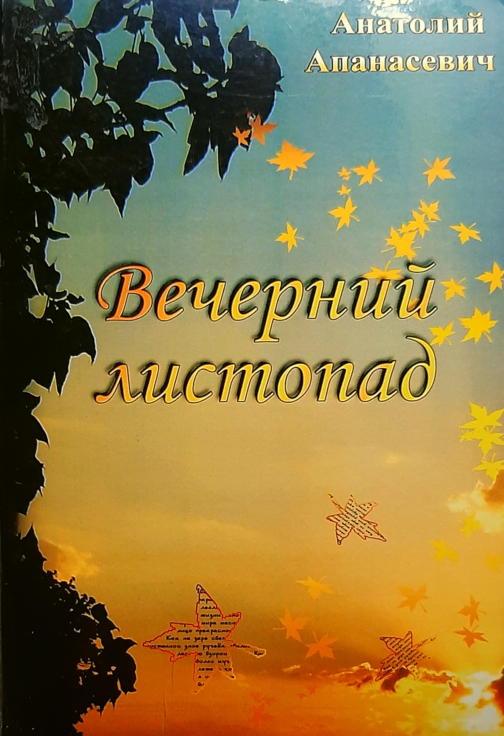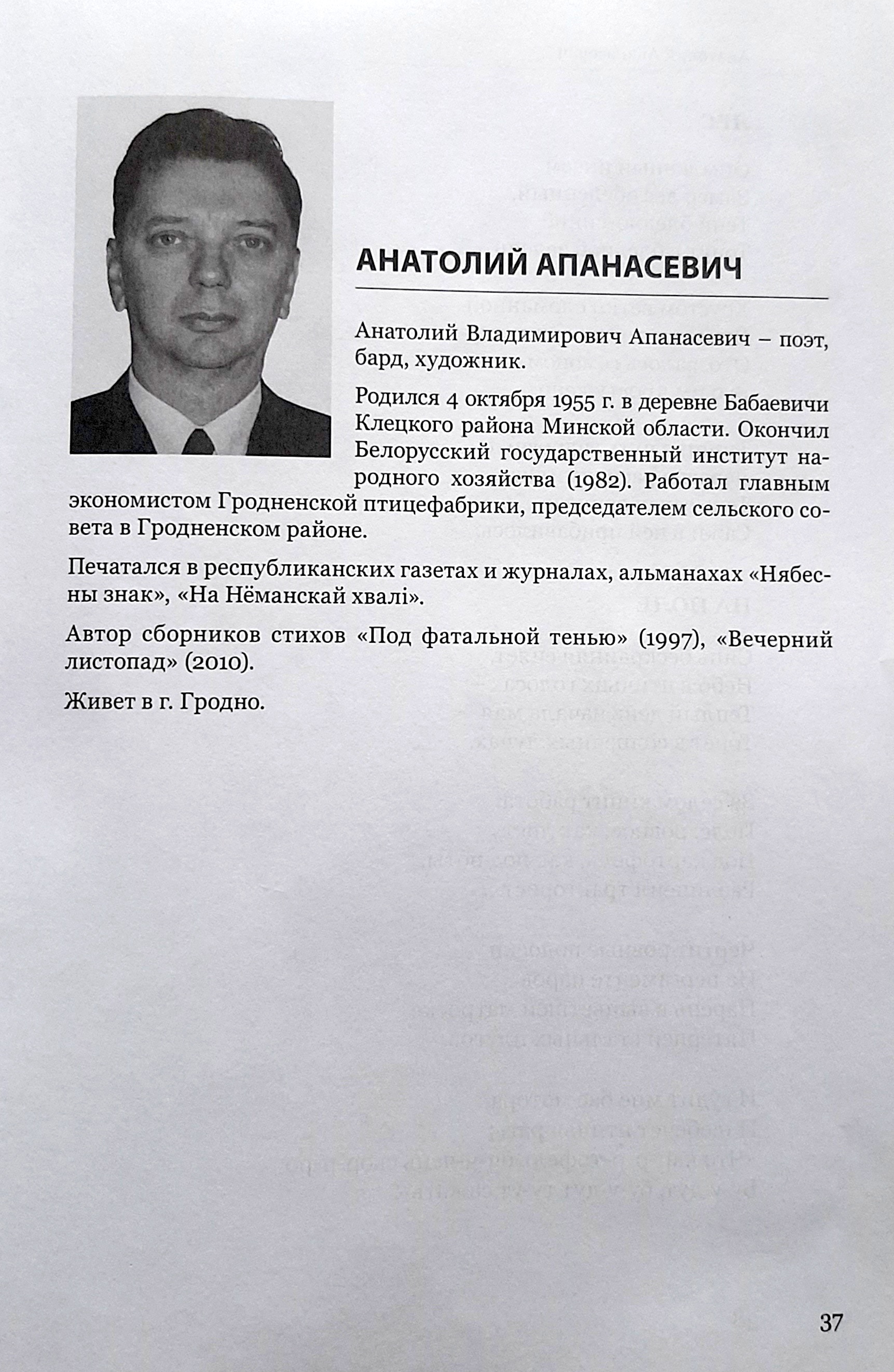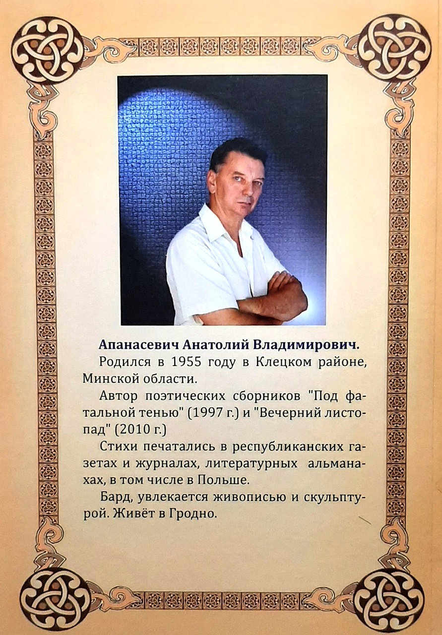 Новая кніга гродзенскага паэта, члена Саюза пісьменнікаў Беларусі Анатоля Апанасевіча, з’яўляецца другой сур’ёзнай кнігай паэта. Вершы, якія ўвайшлі ў новую кнігу, напісаны аўтарам у розныя гады. Некаторыя з іх належаць пяру яшчэ пачынаючага паэта, але нідзе раней не друкаваліся. Затое па іх можна меркаваць аб узрастанні майстэрства аўтара, калі ад адасобленай асабістай лірыкі ён уздымаецца да грамадзянскага і філасофскага гучання, калі кропка погляду лірычнага героя вершаў пераходзяць ад сумневу да разумення, а затым і глыбокага суперажывання. чытаць далей