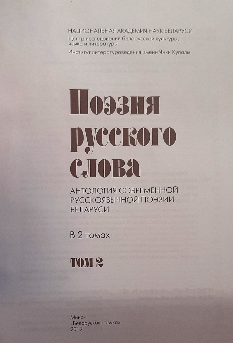 В 2019 году в издательстве "Беларуская навука" вышла в свет двухтомная антология современной русскоязычной поэзии Беларуси «Поэзия русского слова».